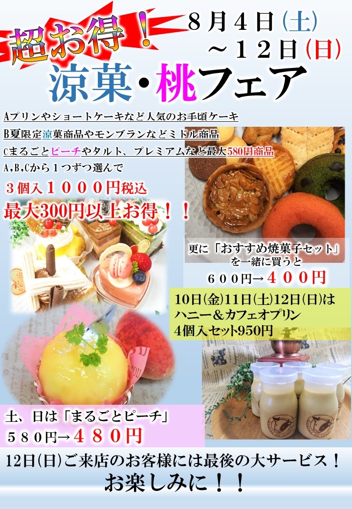涼菓 桃フェア8 4 土 12 日